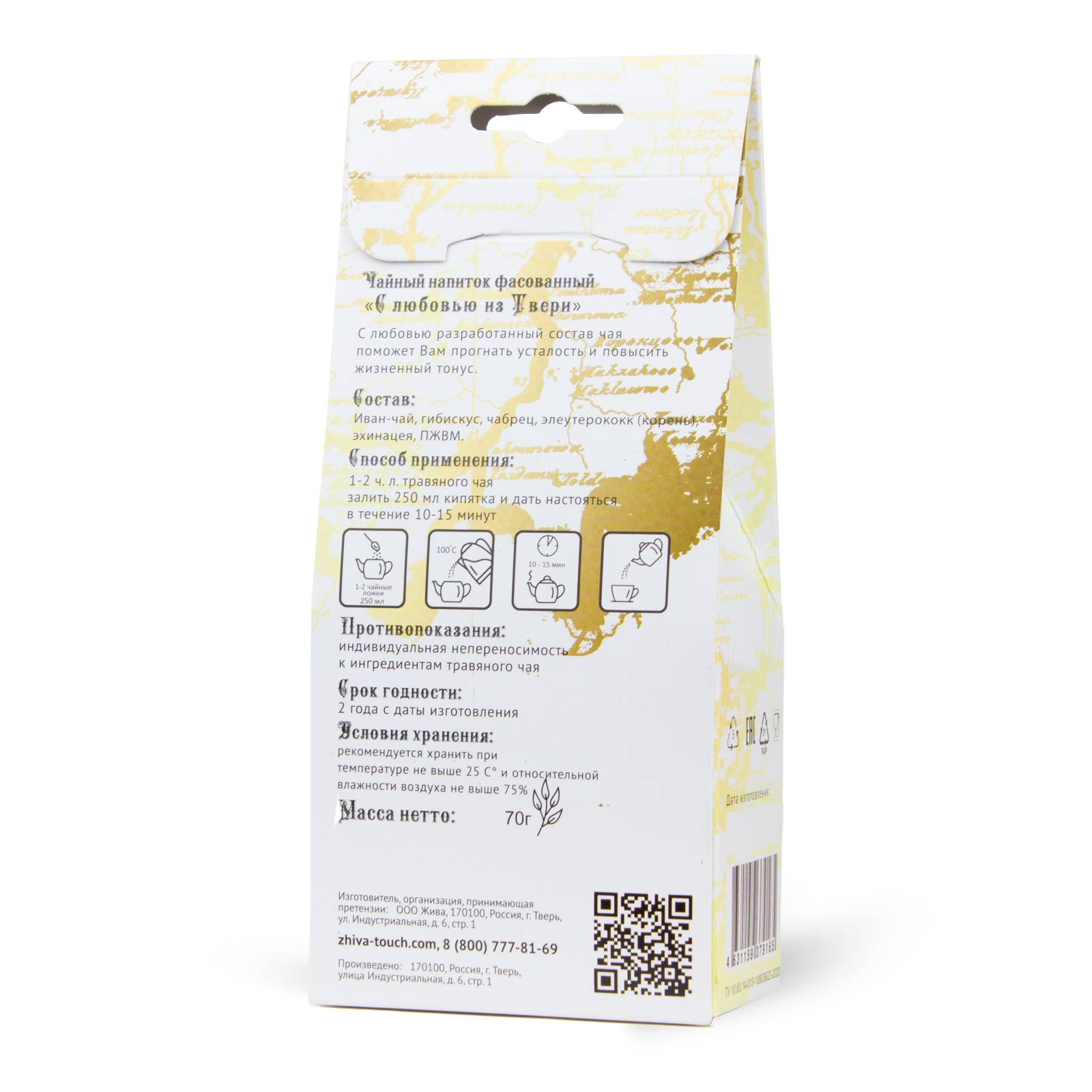 Чай «С любовью из Твери» — это натуральный травяной чай, созданный для поддержки жизненного тонуса, энергии и крепкого иммунитета. Сочетает полезные свойства иван-чая, гибискуса, чабреца, корня элеутерококка, эхинацеи и уникального продукта жизнедеятельности восковой моли (ПЖВМ). Такой напиток бодрит, укрепляет и помогает справляться с нагрузками.