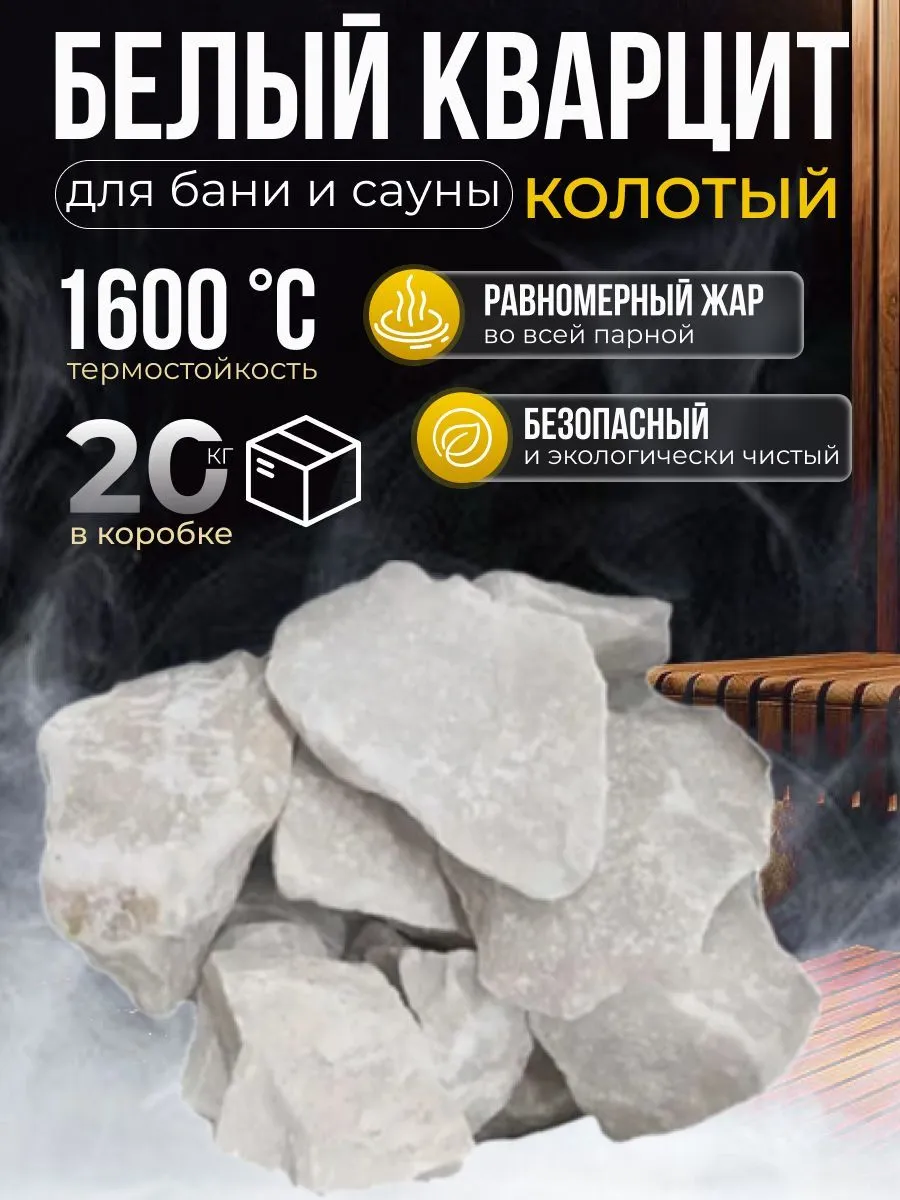 Предлагаем купить Камень для бани "Белый кварцит", колотый 20кг в нашем магазине "Веникофф.рф"