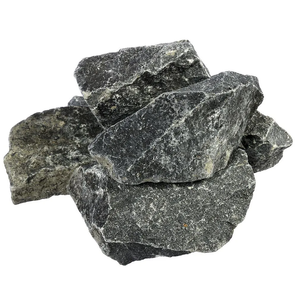 Габбро-диабаз — одна из лучших пород для банных камней. Благодаря особой офитовой структуре этот природный материал обладает превосходной теплопроводностью, что обеспечивает быстрый и равномерный прогрев. Важное преимущество габбро-диабаза — его устойчивость к резким температурным перепадам и безопасность при нагреве.