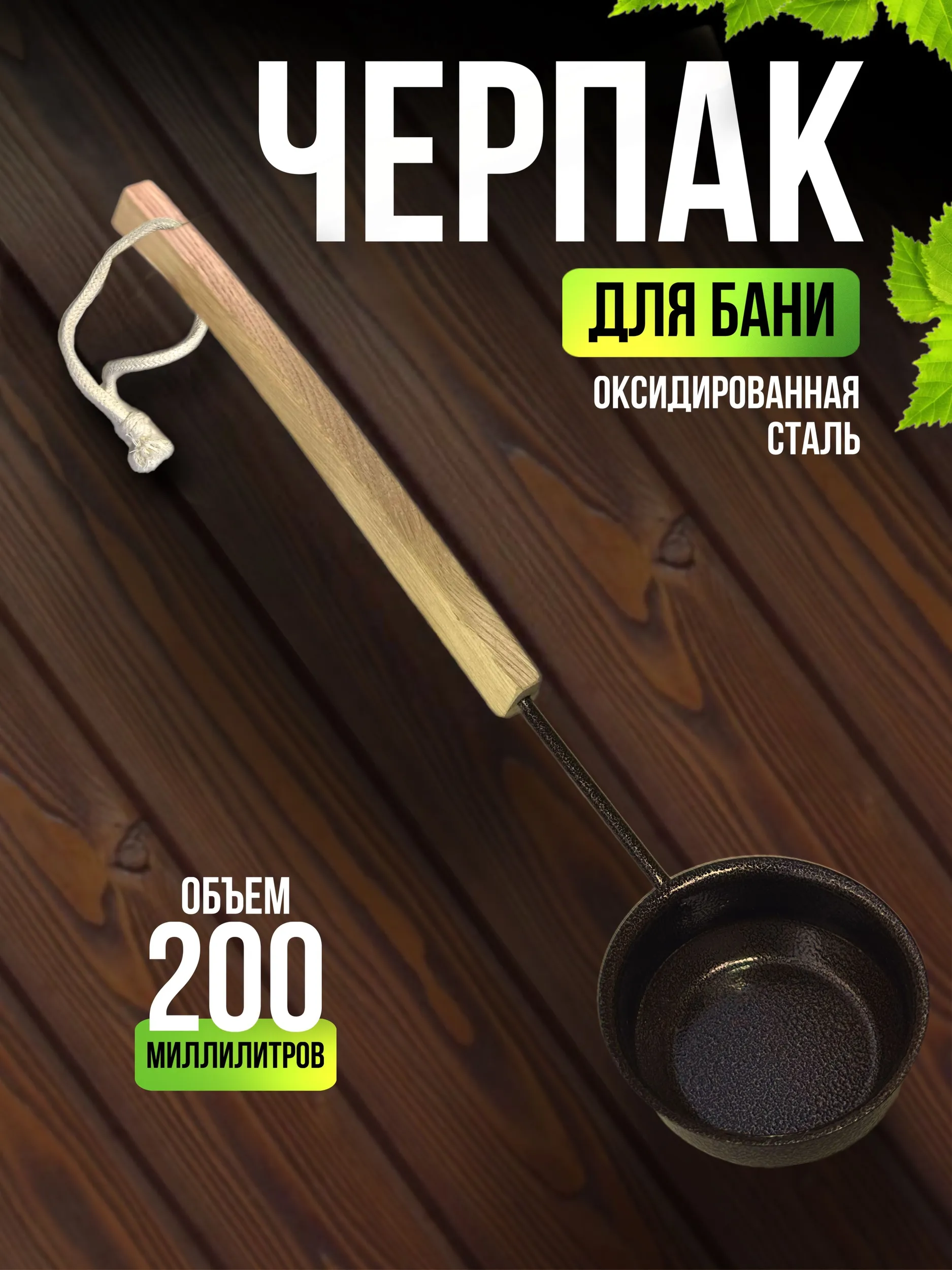 Этот удобный черпак позволяет легко набирать и переливать воду, чтобы поддерживать оптимальный уровень влажности в бане. Он обеспечивает комфорт во время процедур и создает приятное ощущение. Ковш объемом 200мл идеальное решение для вашей сауны. Надежная сварка и оксидированная сталь - залог того, что этот аксессуар прослужит Вам долгие годы.