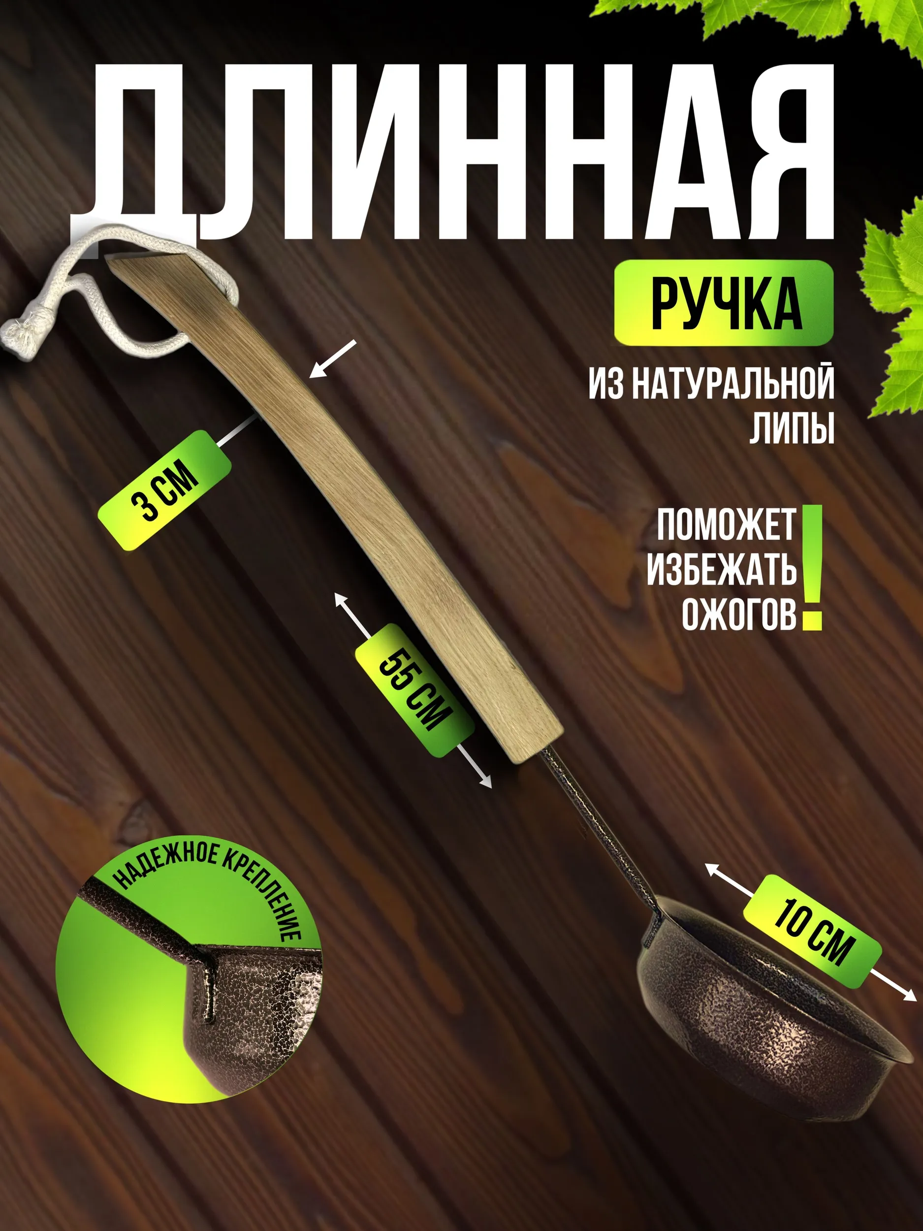 Предлагаем купить Ковш черпак для бани и сауны из стали 0,2 л, длина 55 см коричневый в нашем магазине "Веникофф.рф"
