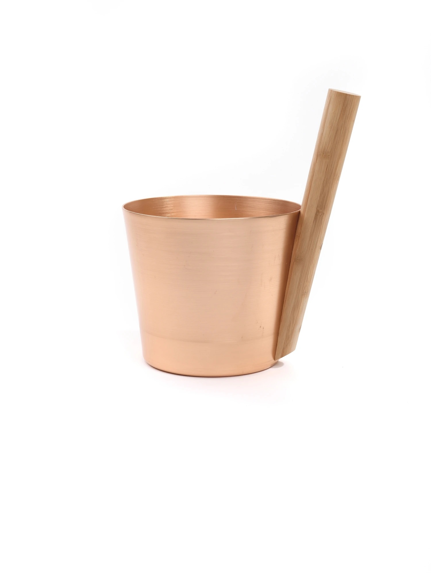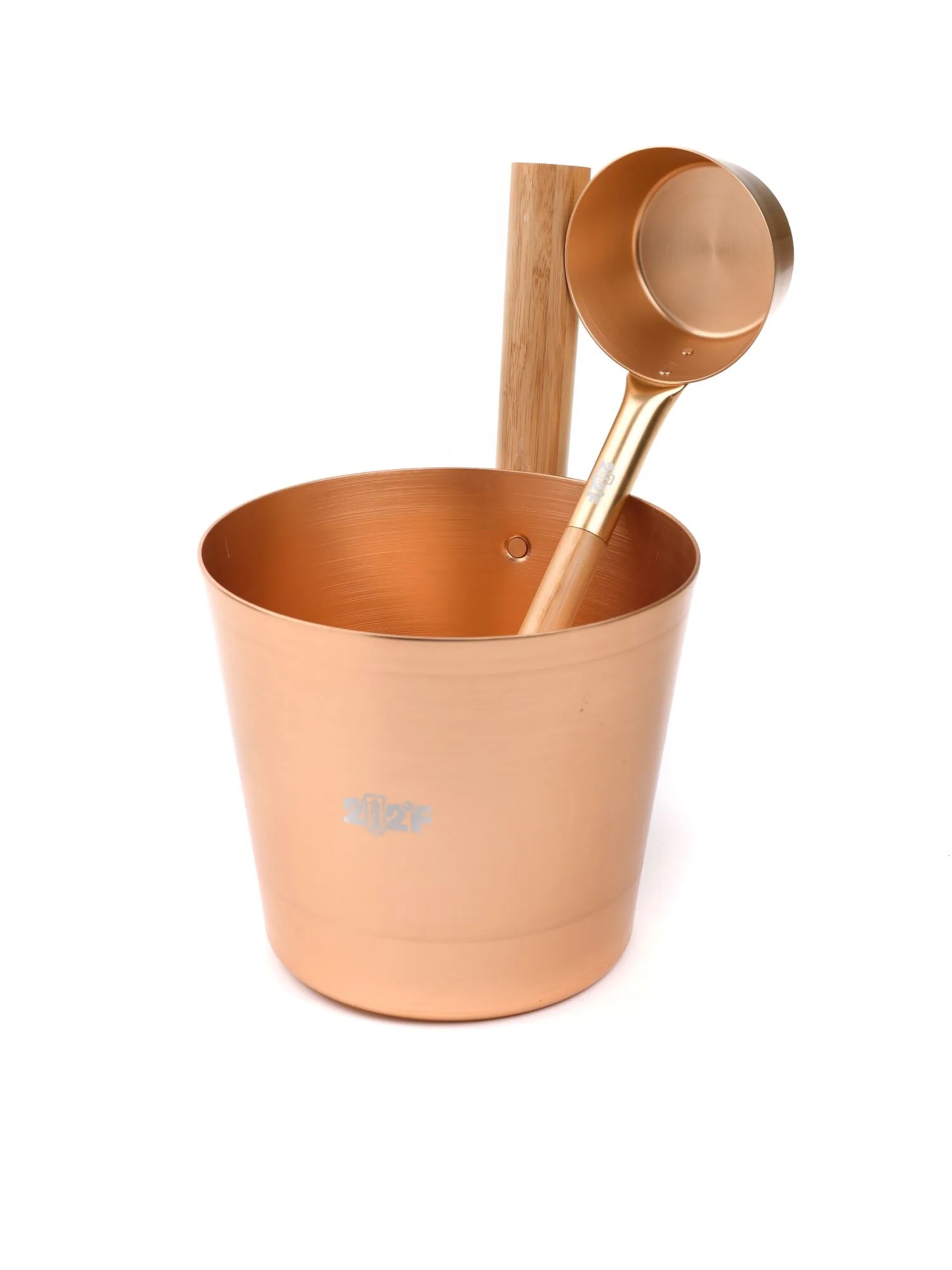 Набор OXY-M-2 GOLD Ушат 5л + черпак 0,2л выполнен из анодированного алюминия золотого цвета толщиной 2мм. Яркий и насыщенный цвет притягивает взгляд,украшая парильное помещение своим изящным блеском . Ручки ушата и черпака выполнены из гладкого и крепкого бамбука, подчеркивающего натуральный стиль изделий