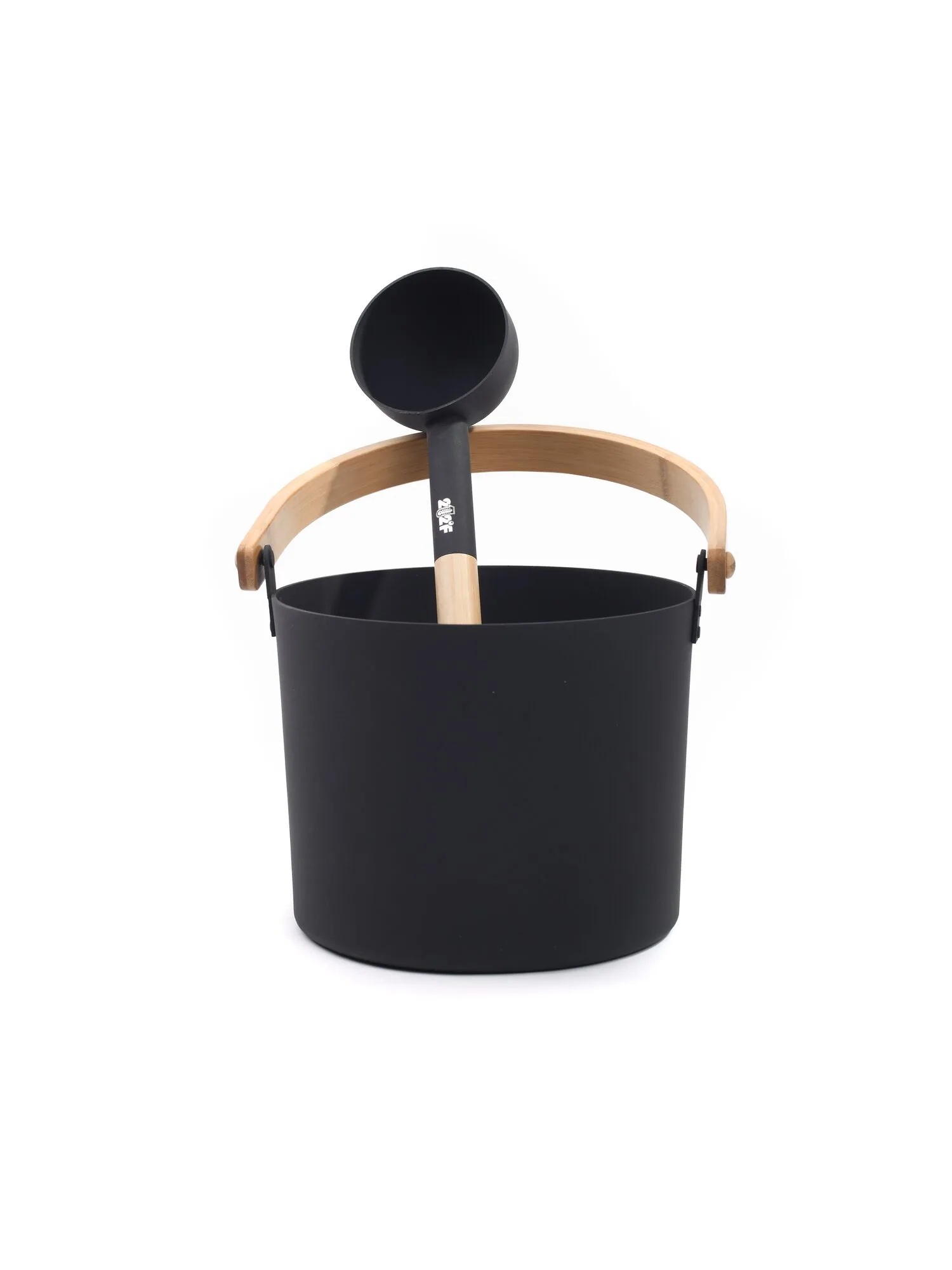 Набор SIMPLE BLACK Шайка 9л + черпак 0,2л выполнен из алюминия толщиной 2мм, покрашенного черной матовой краской, придающей изделию глубокий, насыщенный цвет. Краска наносится методом запекания, что позволяет долго сохранять внешний вид продукции. Ручки шайки и черпака выполнены из гладкого и крепкого бамбука, подчеркивающего натуральный стиль изделий