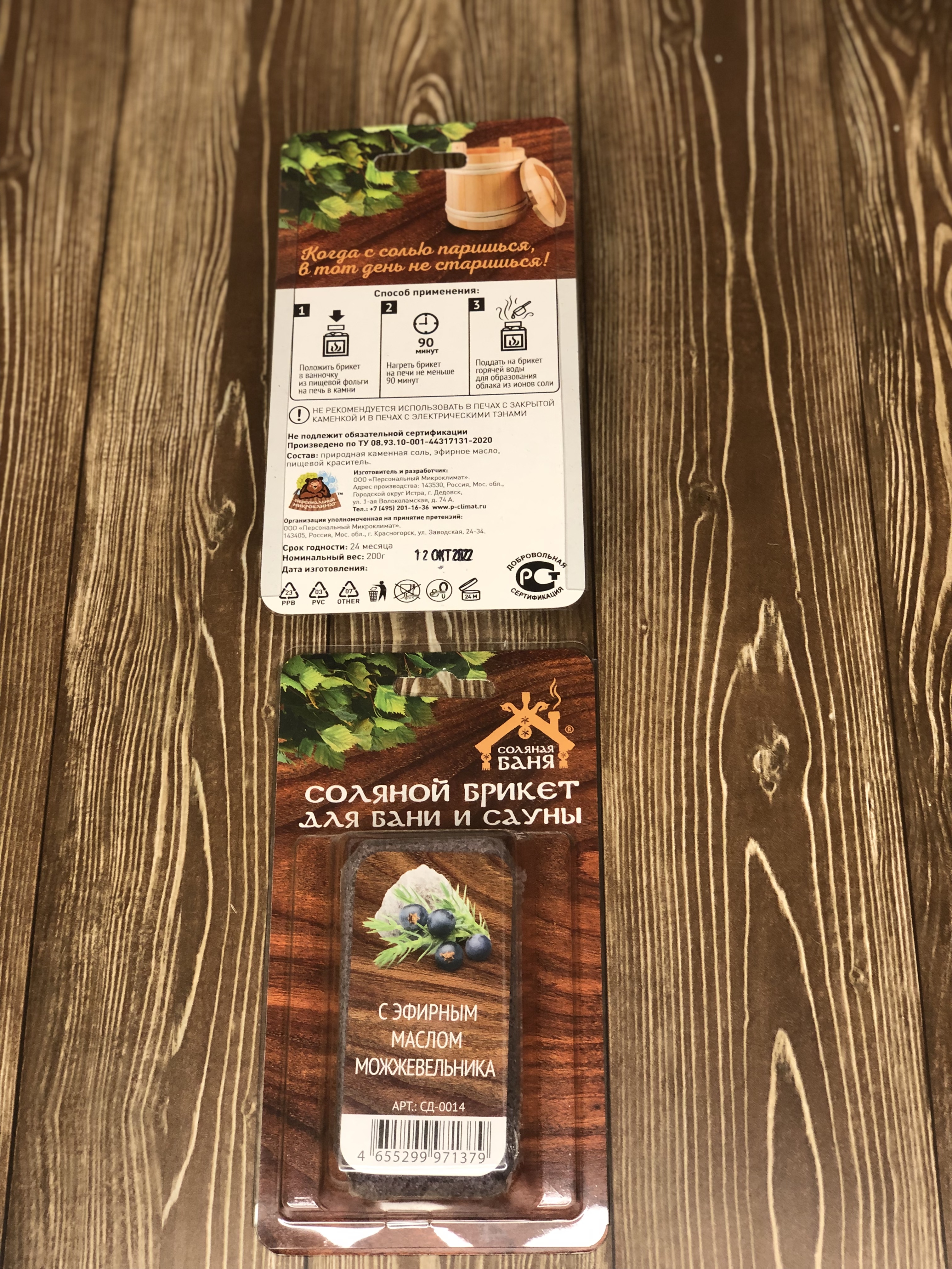 Соляной брикет насыщает банный пар терпким древесно-бальзамическим ароматом, который раскрепощает, повышает активность, избавляет от сонливости, беспокойства и депрессивного настроения. Парные процедуры с можжевеловым паром рекомендуются, в частности, людям, страдающим бессонницей.