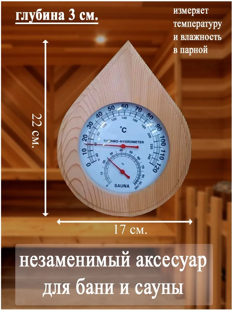 Термогигрометр — это незаменимый прибор для создания идеальных условий в парной бане или сауне. С его помощью вы сможете точно контролировать как температуру, так и уровень влажности, что является ключевым фактором для комфортного и оздоровительного посещения таких помещений. Данная банная станция сочетает в себе два отдельных измерительных устройства: термометр, который обеспечивает надежные данные о температуре в парилке, и гигрометр, измеряющий влажность, что позволяет корректировать параметры микроклимата в зависимости от индивидуальных предпочтений. Идеально подходящий для настенного размещения, термогигрометр легко устанавливается и демонстрирует высокую точность показаний. Циферблаты прибора закрыты прочным стеклом, что обеспечивает защиту от повреждений и позволяет долговременно использовать его в условиях повышенной влажности и температуры. Эстетичный дизайн устройства дополнит интерьер любой сауны или бани, а его функциональность сделает ваши процедуры более комфортными и полезными. Инвестируя в термогигрометр, вы заботитесь о своем здоровье и здоровье своих близких, создавая атмосферы полного релакса и блаженства.