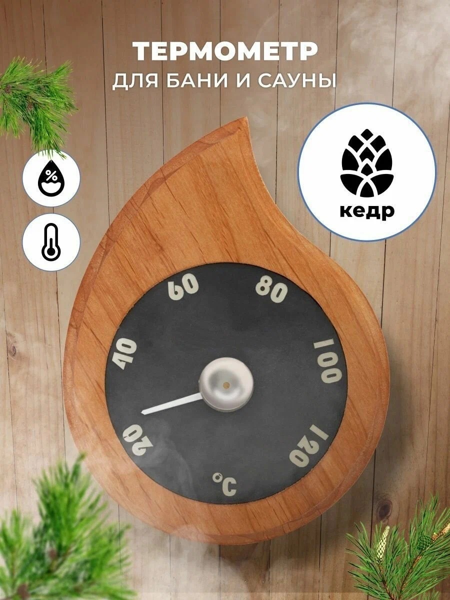 Предлагаем купить Термометр для бани и сауны, капля, кедр, биметаллический для бани в нашем магазине "Веникофф.рф"