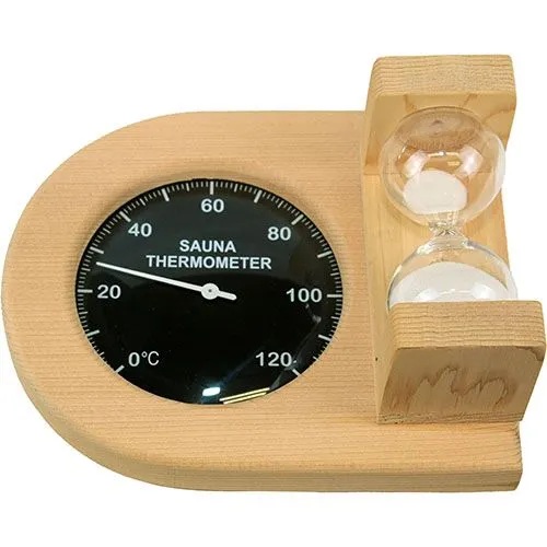 Термометр с песочными часами Т-33B, изготовленный из элитного канадского кедра, сочетает в себе природную эстетику и высокую функциональность. При нагревании древесина наполняет парную благородным хвойным ароматом, создавая атмосферу уюта и способствуя релаксации. Чёрный циферблат в сочетании с контрастными белыми стрелками и шкалой обеспечивает безупречную видимость показателей даже при густом паре или приглушённом освещении сауны.