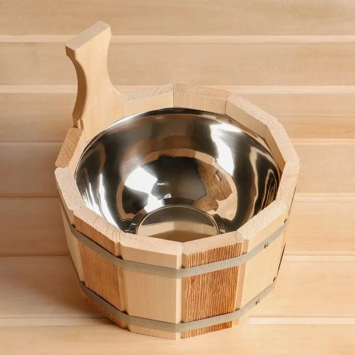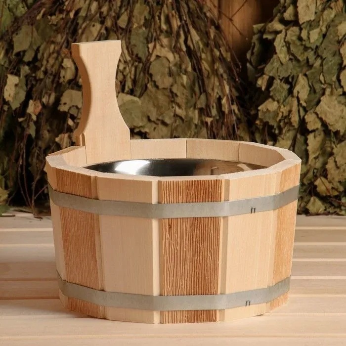 приготовления настоев и использования в качестве ведро для бани и сауны, емкости для воды горячей или холодной.