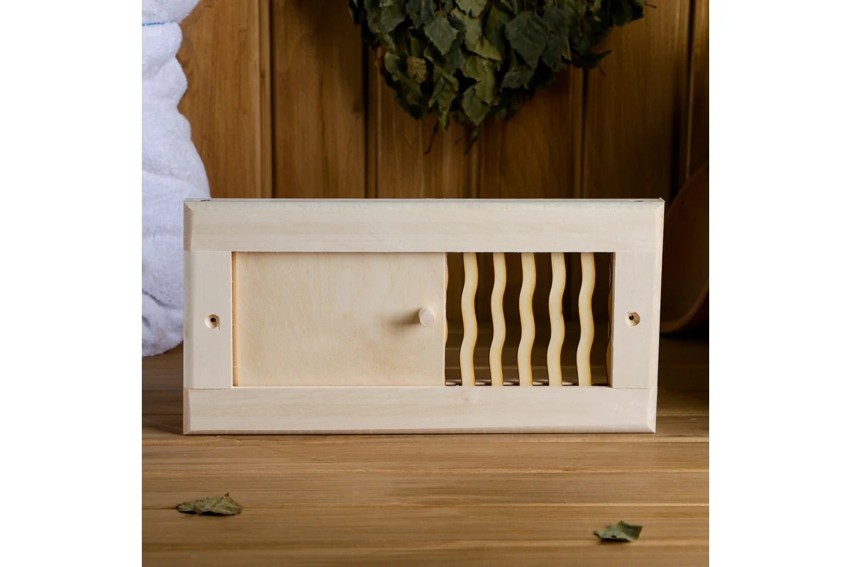 При постройке парной важно уделить особое внимание системе вентиляции. Правильная циркуляция воздуха поможет создать необходимый микроклимат в помещении, избежать появление плесени и грибка, обеспечить приток свежего воздуха и устранить неприятные запахи. Вентиляционная решетка с задвижкой предназначена для регулирования воздухообмена в сауне (бане) вручную. Устанавливается в парилке на вытяжном канале вентиляции, который обеспечивает удаление из парной использованного воздуха с низким содержанием кислорода. Вентиляционная решетка изготовлена из отборной древесины липы.Предлагаем купить Вентиляционная решетка из липы Пламя 28x12 см, с задвижкой для бани в нашем магазине "Веникофф.рф"